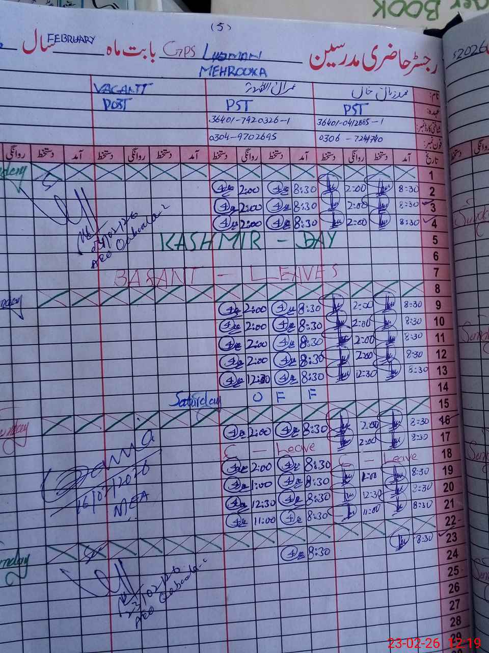 | Name: MU**** ZA**** Designation: (School Headmaster's/Headmistress's) PST Phone/Cell Number: 03**** |