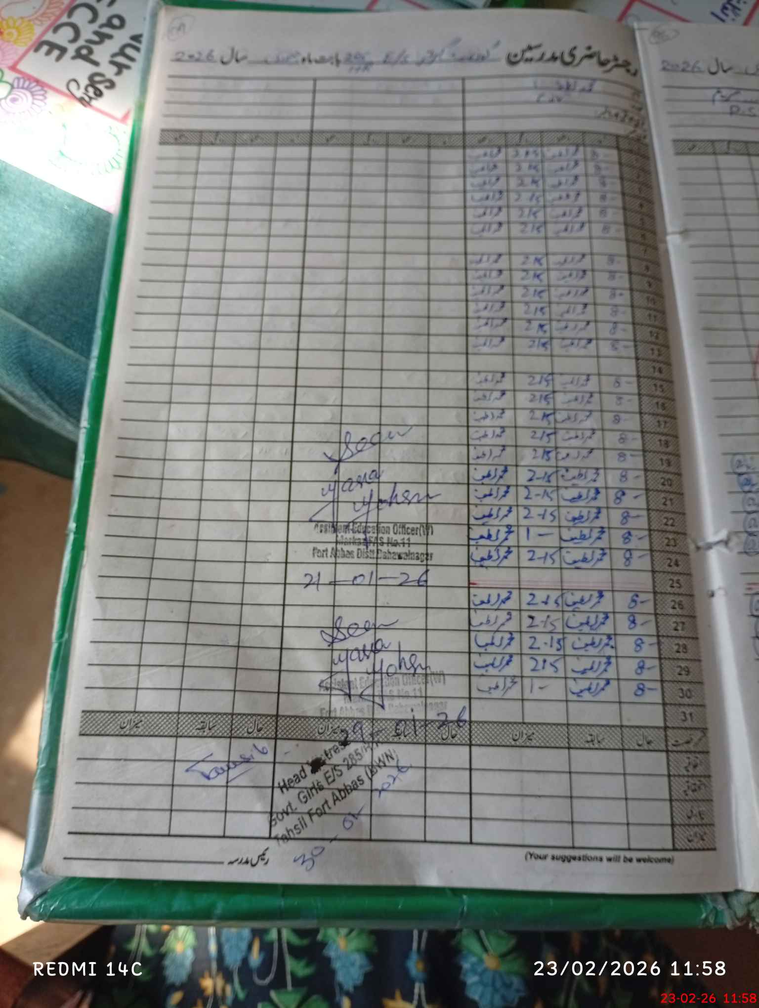 | District: BAHAWALNAGAR | Tehsil: FORT ABBAS | Markaz: FTS-XI-FEMALE | Level: Middle | |