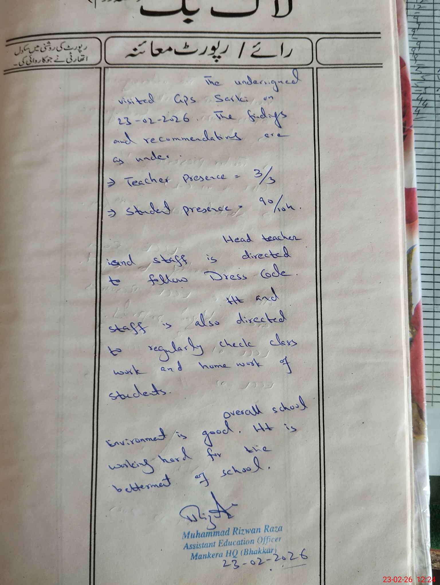 | EMIS Code: 38130076 | Name of School: GPS SARKI | |||
