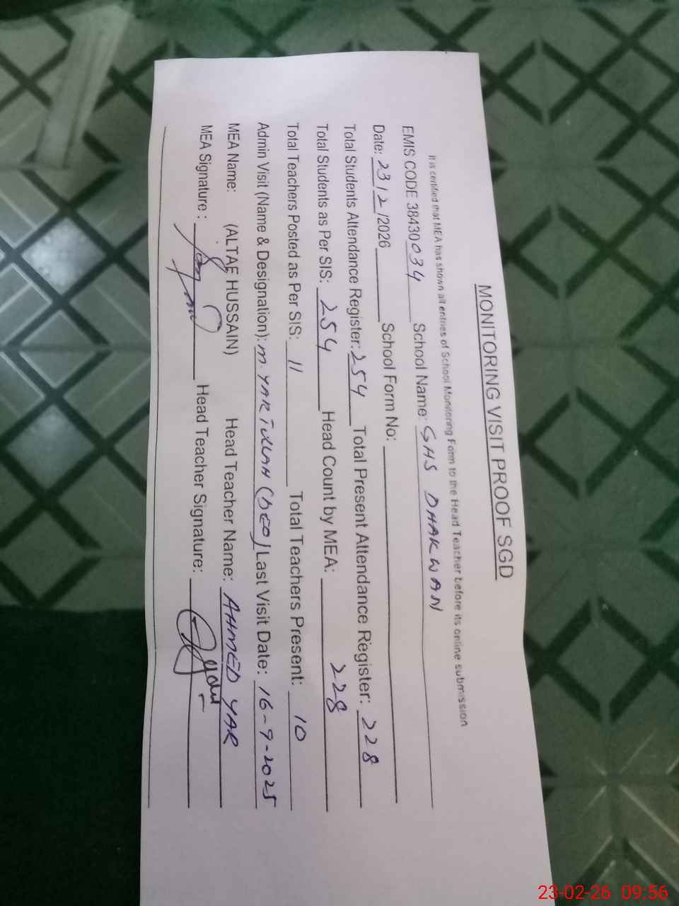 | EMIS Code: 38430034 | Name of School: GHS DHAKWAN | |||