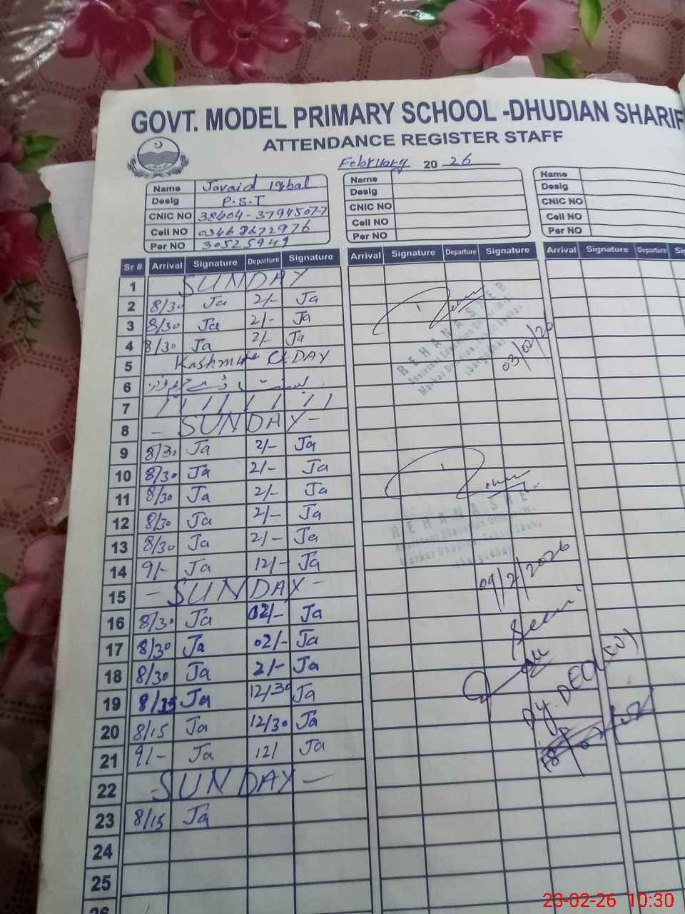 | Name: JA**** IQ**** Designation: (School Headmaster's/Headmistress's) PST Phone/Cell Number: 03**** |