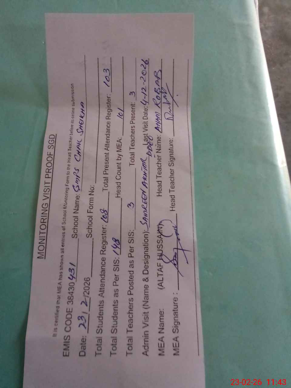 | EMIS Code: 38430431 | Name of School: GMPS CHAK SHEIKHA | |||