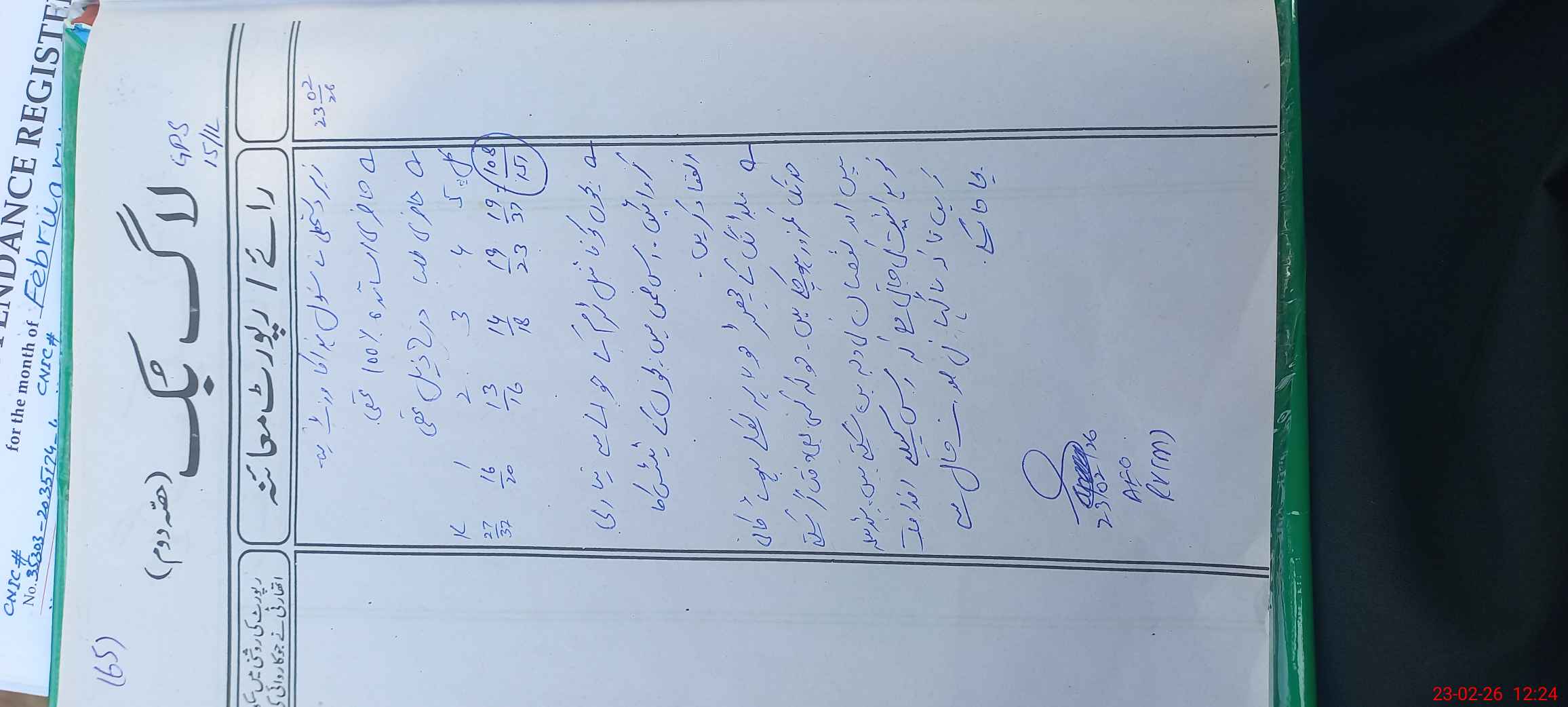 | CNIC | Full Name | Designation | R/C | Absence during last cal. month |