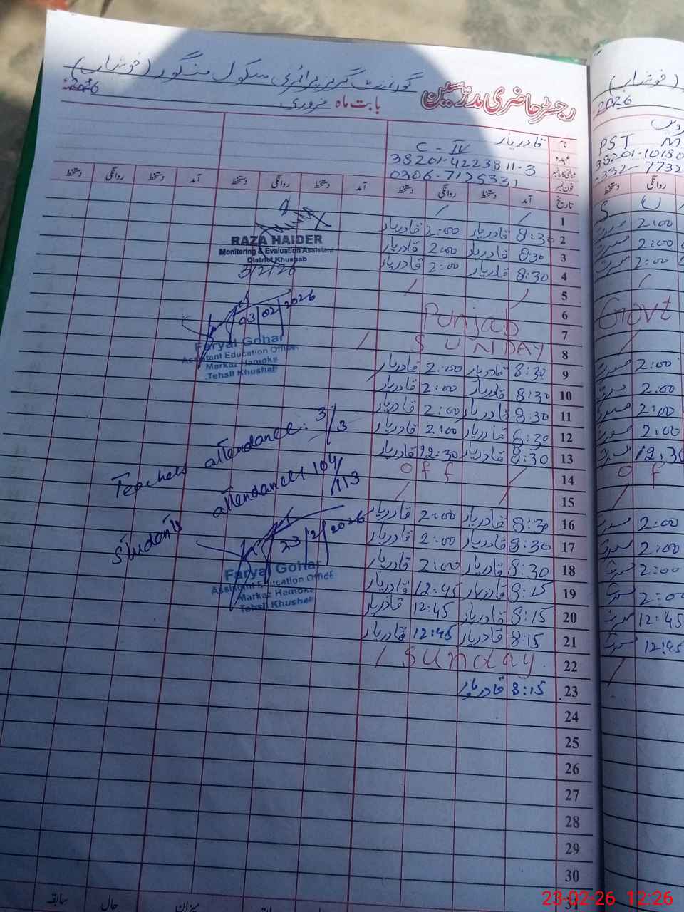 | Name: Fa**** Ba**** Designation: (School Headmaster's/Headmistress's) PST Phone/Cell Number: 03**** |