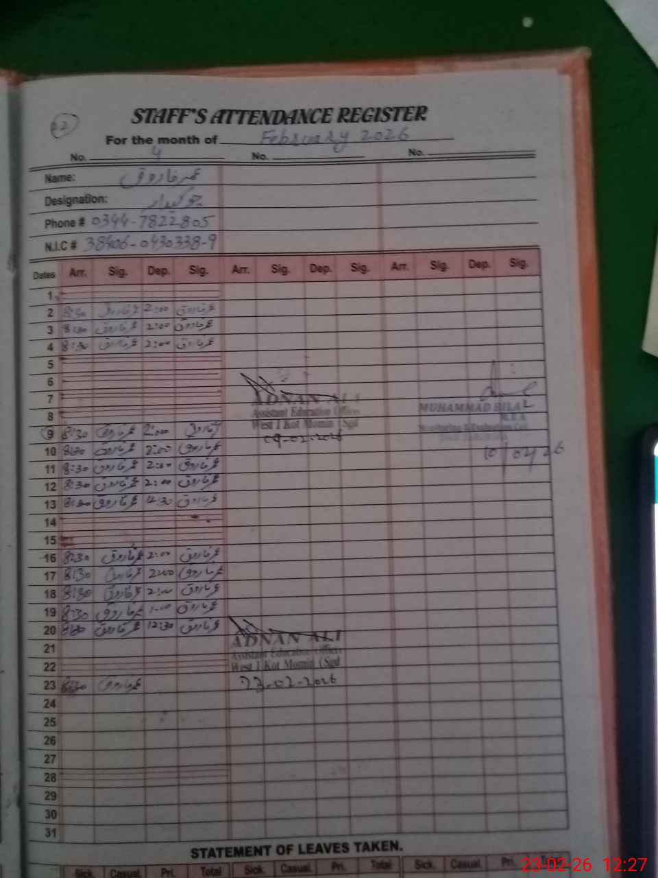 | Name: AB**** AN**** Designation: (School Headmaster's/Headmistress's) PTC Phone/Cell Number: 03**** |