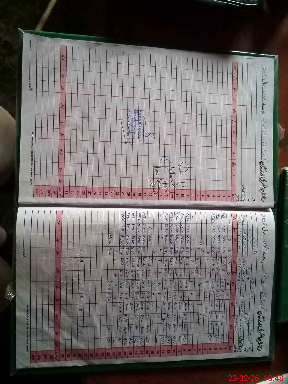 | CNIC | Full Name | Designation | R/C | Absence During Last Calender Month |