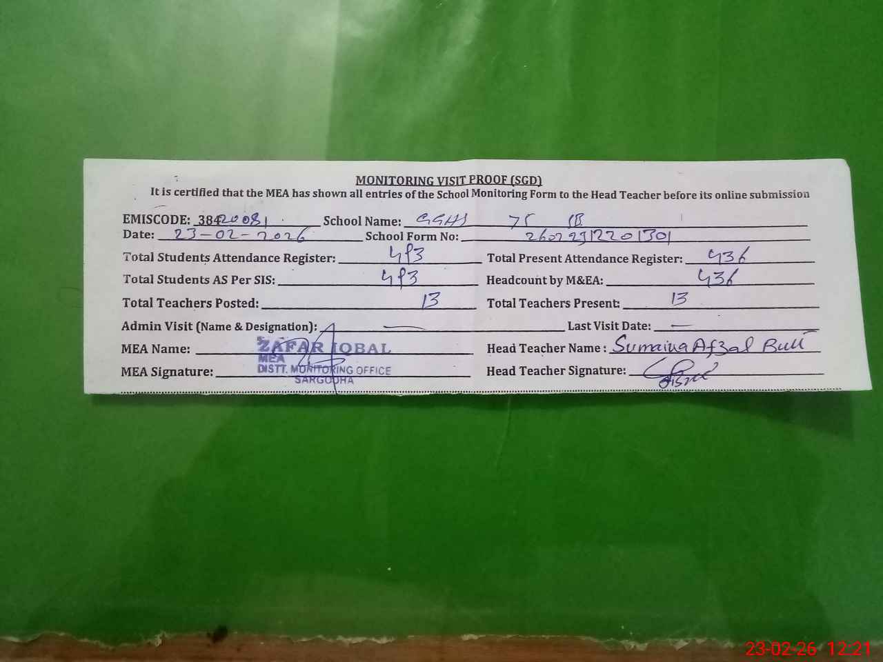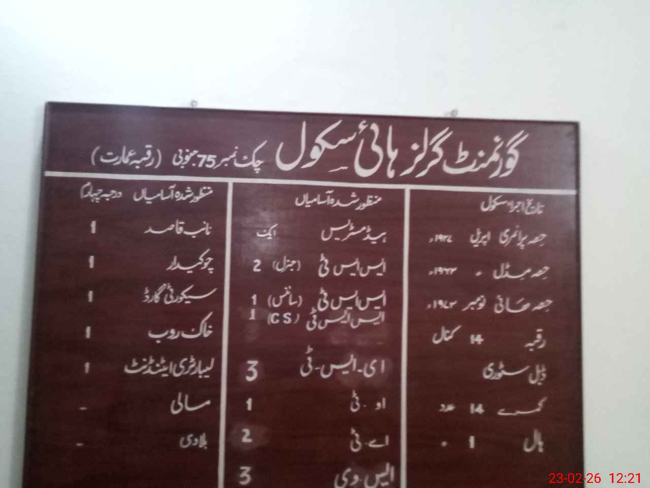 | EMIS Code: 38420081 | Name of School: GGHS CHAK NO.75 SB | |||