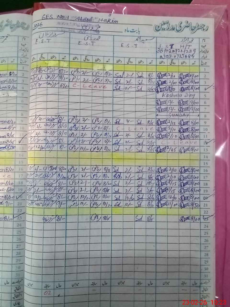 | Name: Mu**** Ab**** Designation: (School Headmaster's/Headmistress's) SST Phone/Cell Number: 03**** |