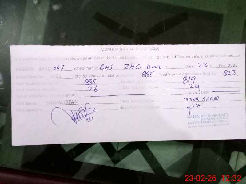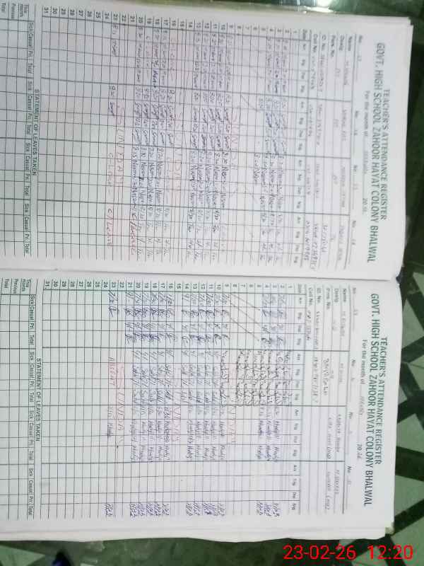 | EMIS Code: 38410047 | Name of School: GHS ZAHOOR HAYAT COLONY BHALWAL | |||
