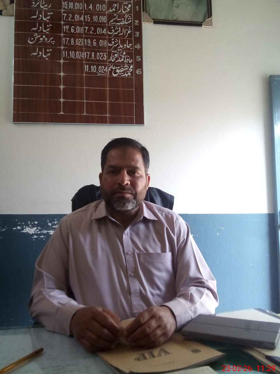 | Name: MU**** Sh**** Designation: (School Headmaster's/Headmistress's) PST Phone/Cell Number: 03**** |