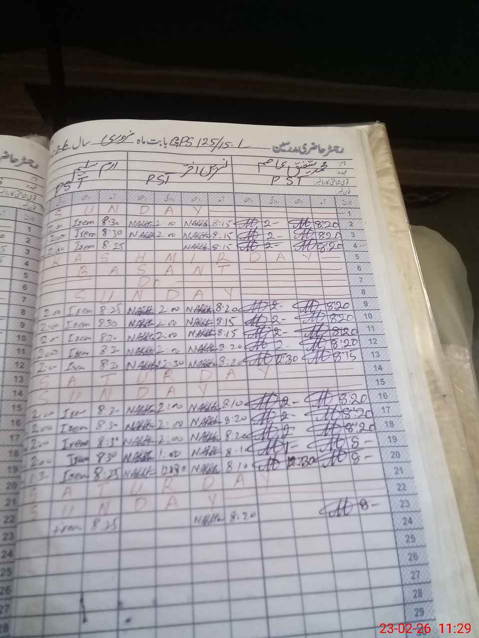 | CNIC | Full Name | Designation | R/C | Absence During Last Calender Month |