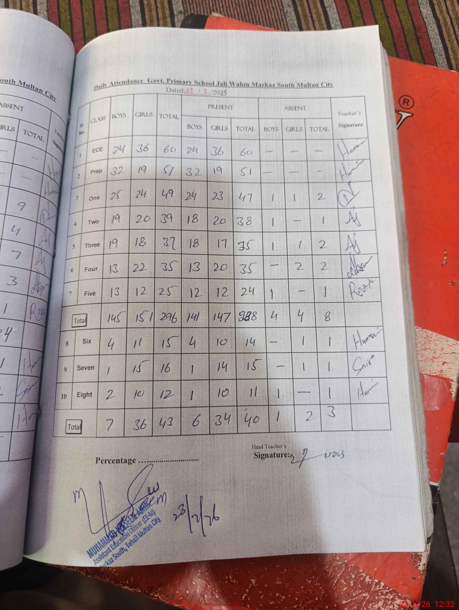 | Attendance Register | Head Teacher | MEA with School | Visit Proof |
