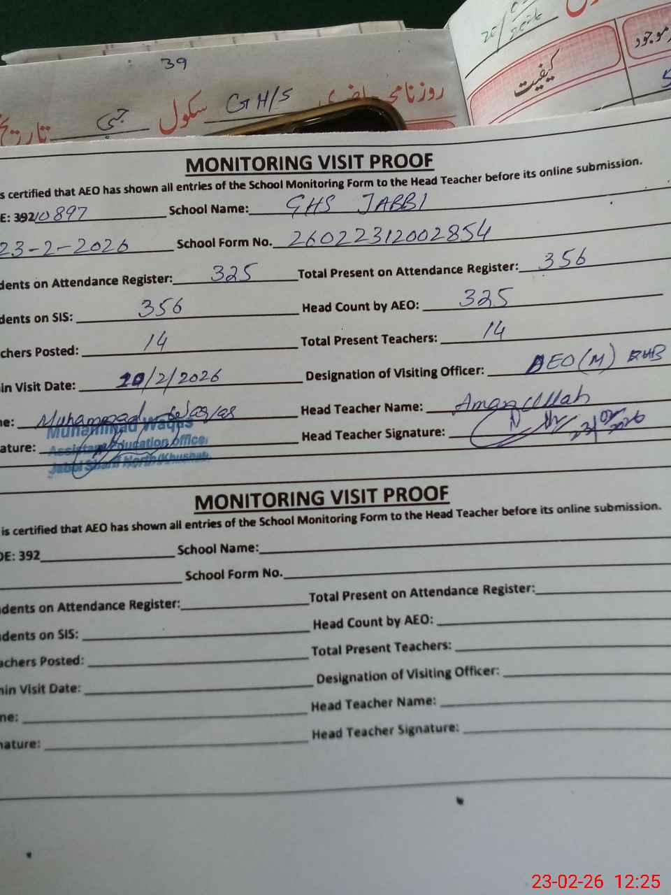 | EMIS Code: 38210897 | Name of School: GHS JABBI | |||