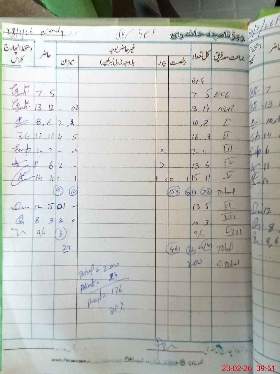 | No. of Students Present - Female | 0 | 5 | 6 | 13 | 9 | 6 | 10 | 5 | 3 | 6 | 75 | |||||