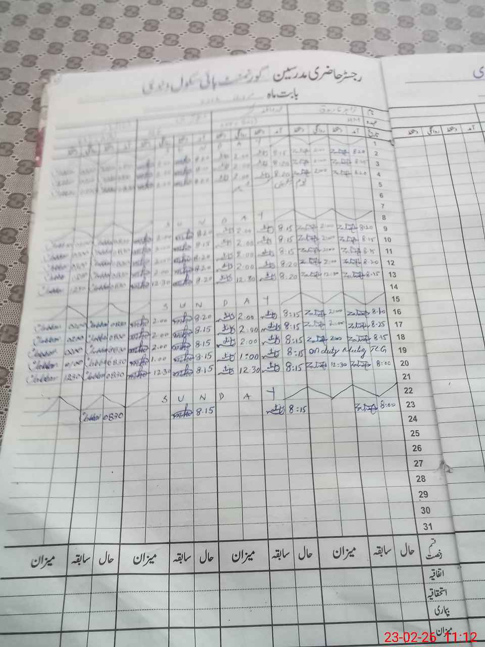 | CNIC | Full Name | Designation | R/C | Absence During Last Calender Month |