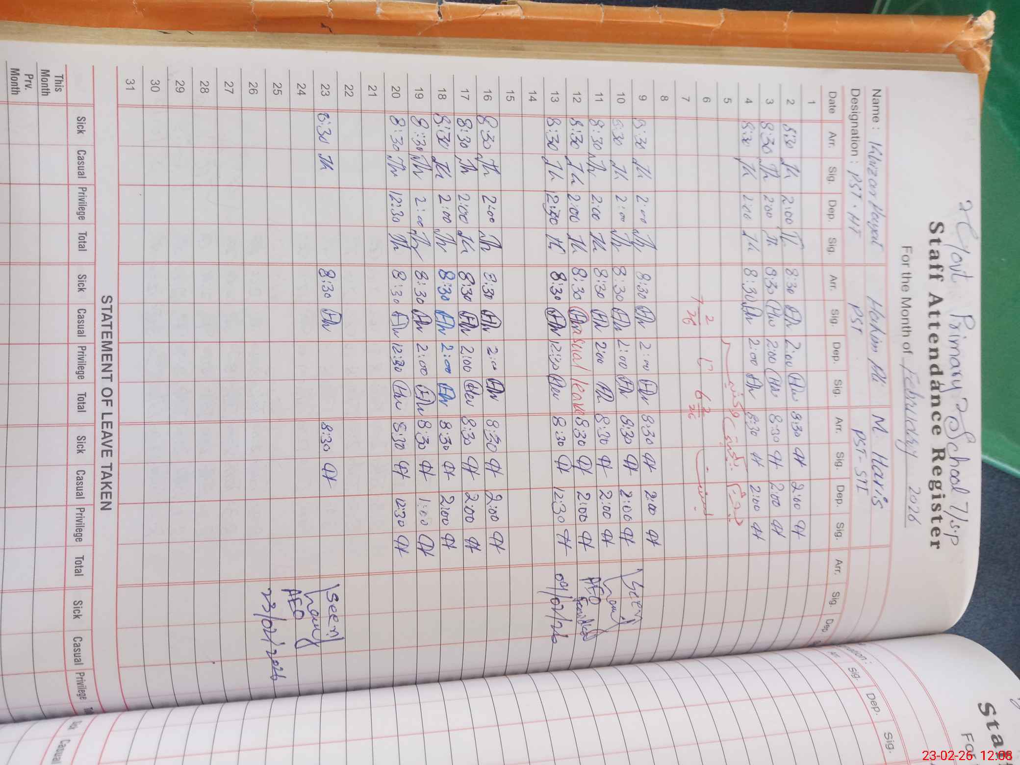 | Name: KH**** HA**** Designation: (School Headmaster's/Headmistress's) Pst (SC-MATH) Phone/Cell Number: 03**** |
