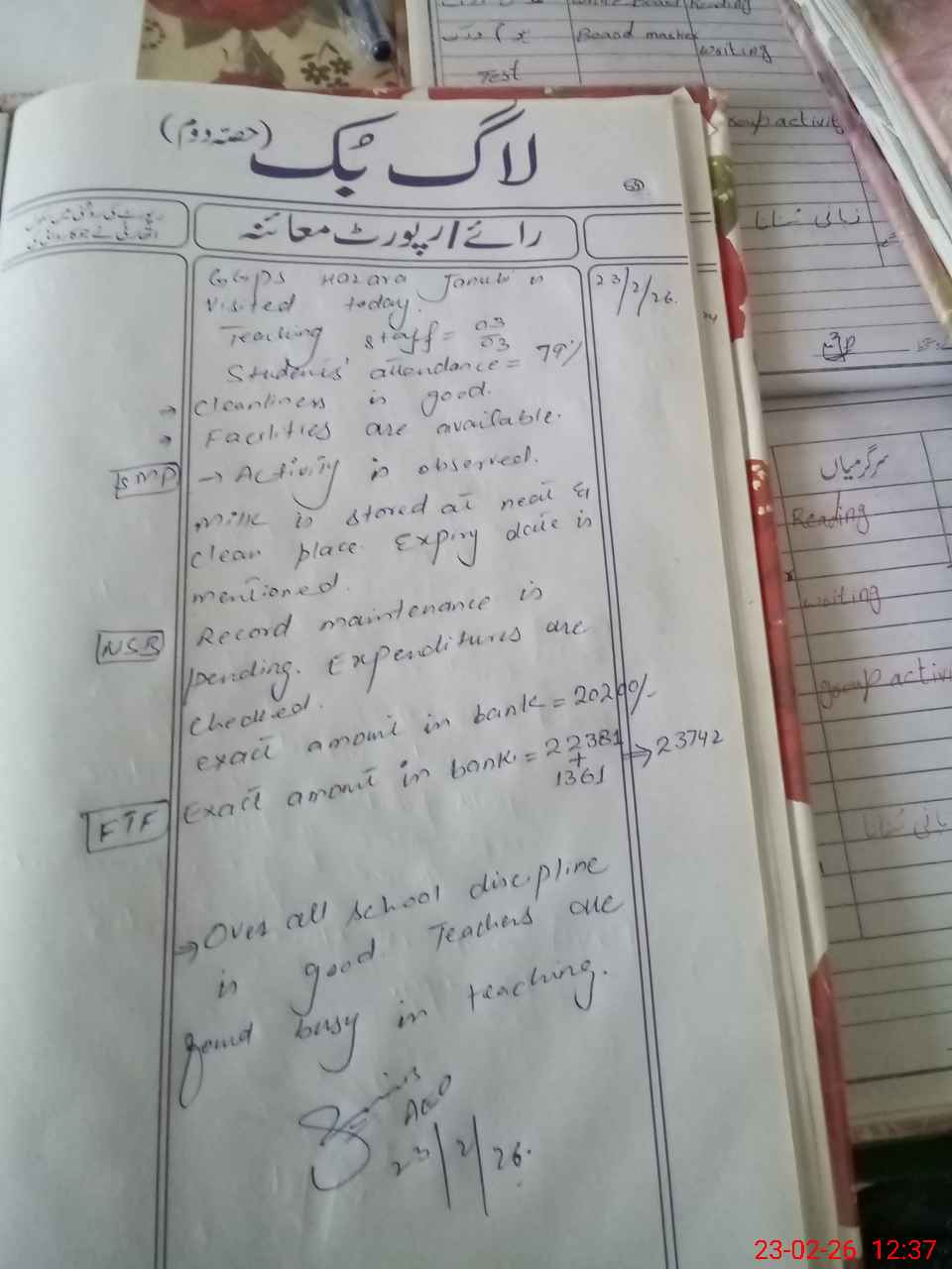 | Remarks (Use Separate Page if Required): Farah Zainab,Sonia Bibi,aleena Bibi,rashma Saleem,soneya batool,memoona bibi.these are previous students present in APP. These are passed out students. | |||||