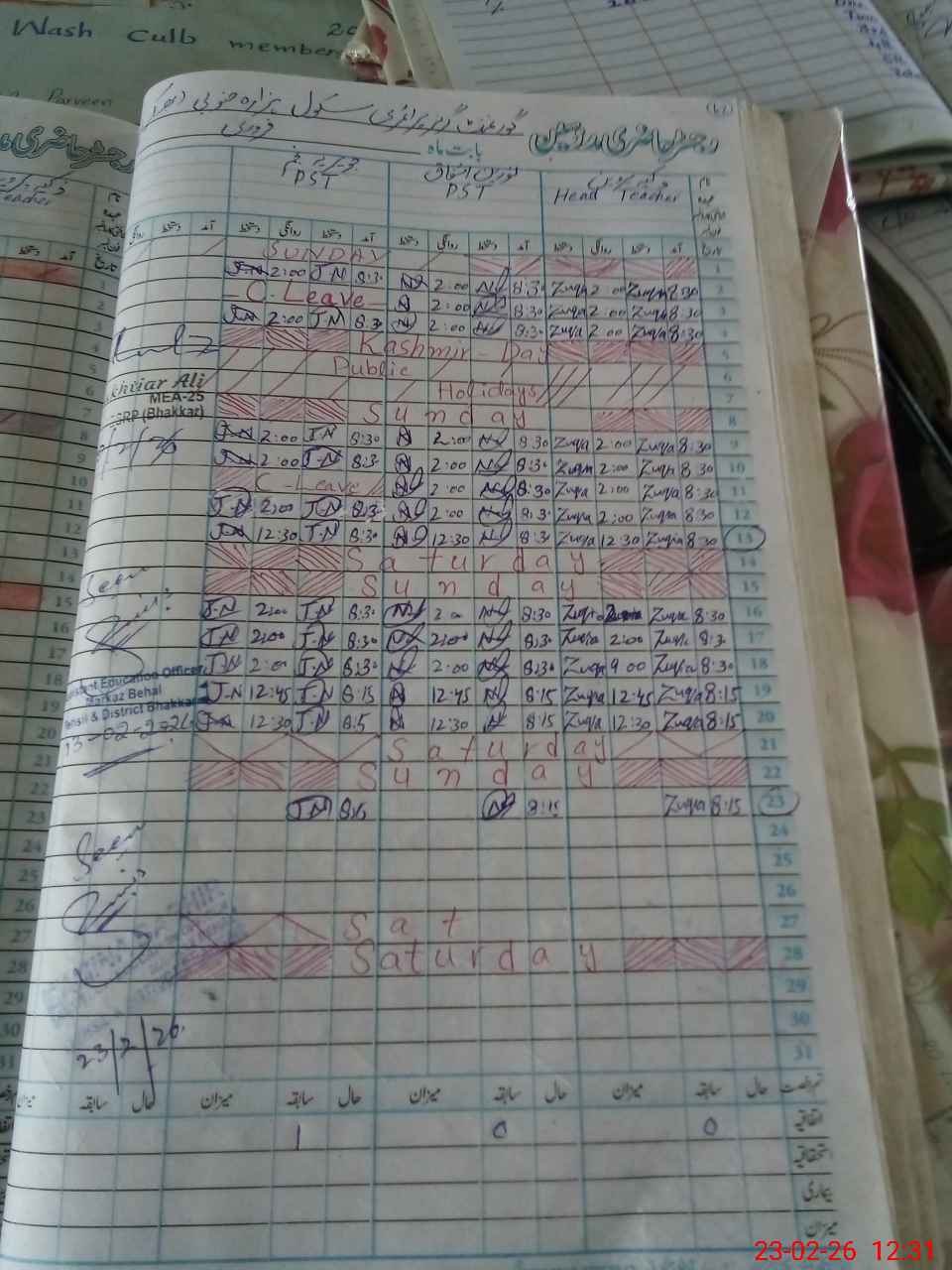 | Name: Zu**** Pa**** Designation: (School Headmaster's/Headmistress's) PST Phone/Cell Number: 03**** |