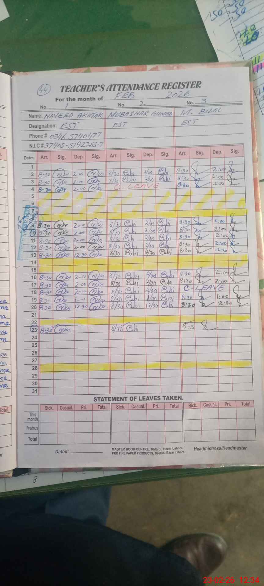 | 37**** | Um**** La**** | PST Science/Maths | Regular | 0 | 0 | 0 | 0 | 0 | 0 | 0 | 0 | 0 | Absent (Un-Authorized) |