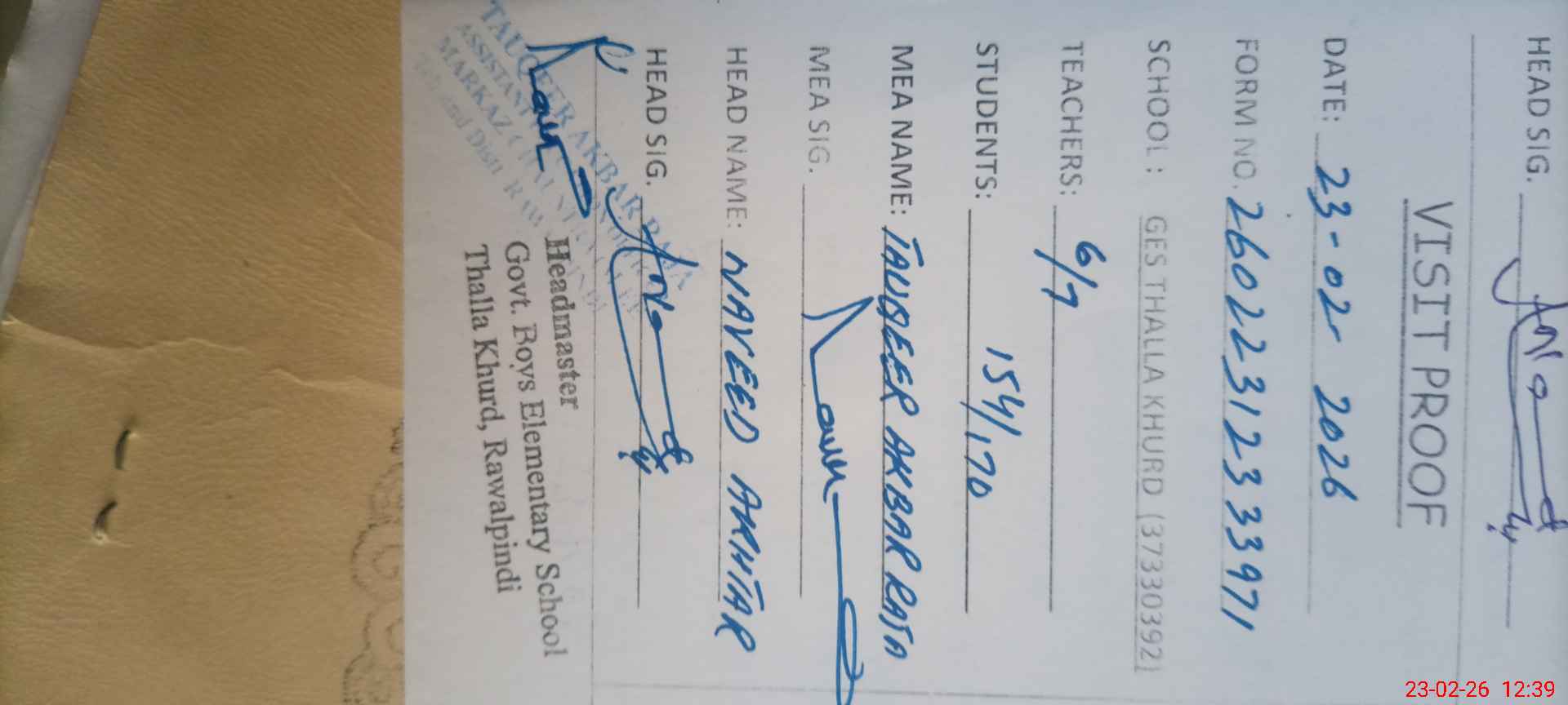| EMIS Code: 37330392 | Name of School: GES THALLA KHURD | |||