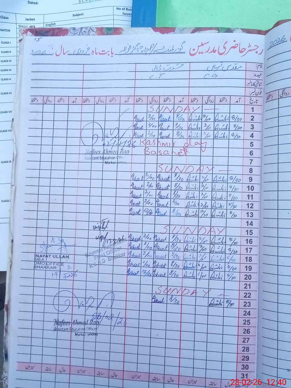 | District: BHAKKAR | Tehsil: KALLUR KOT | Markaz: JANDU - MALE | Level: Primary | |