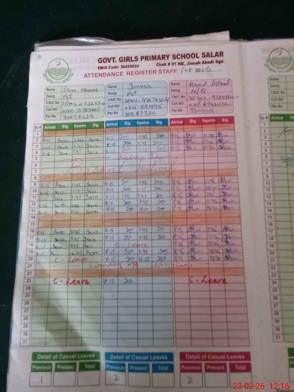 | 38**** | Iq**** Na**** | PST Science/Maths | Regular | 1 | 0 | 0 | 0 | 1 | 0 | 0 | 0 | 0 | Casual |