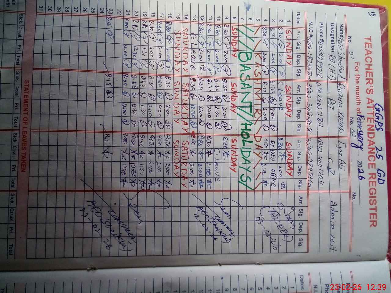 | Name: Fo**** Sh**** Designation: (School Headmaster's/Headmistress's) PST Phone/Cell Number: 03**** |