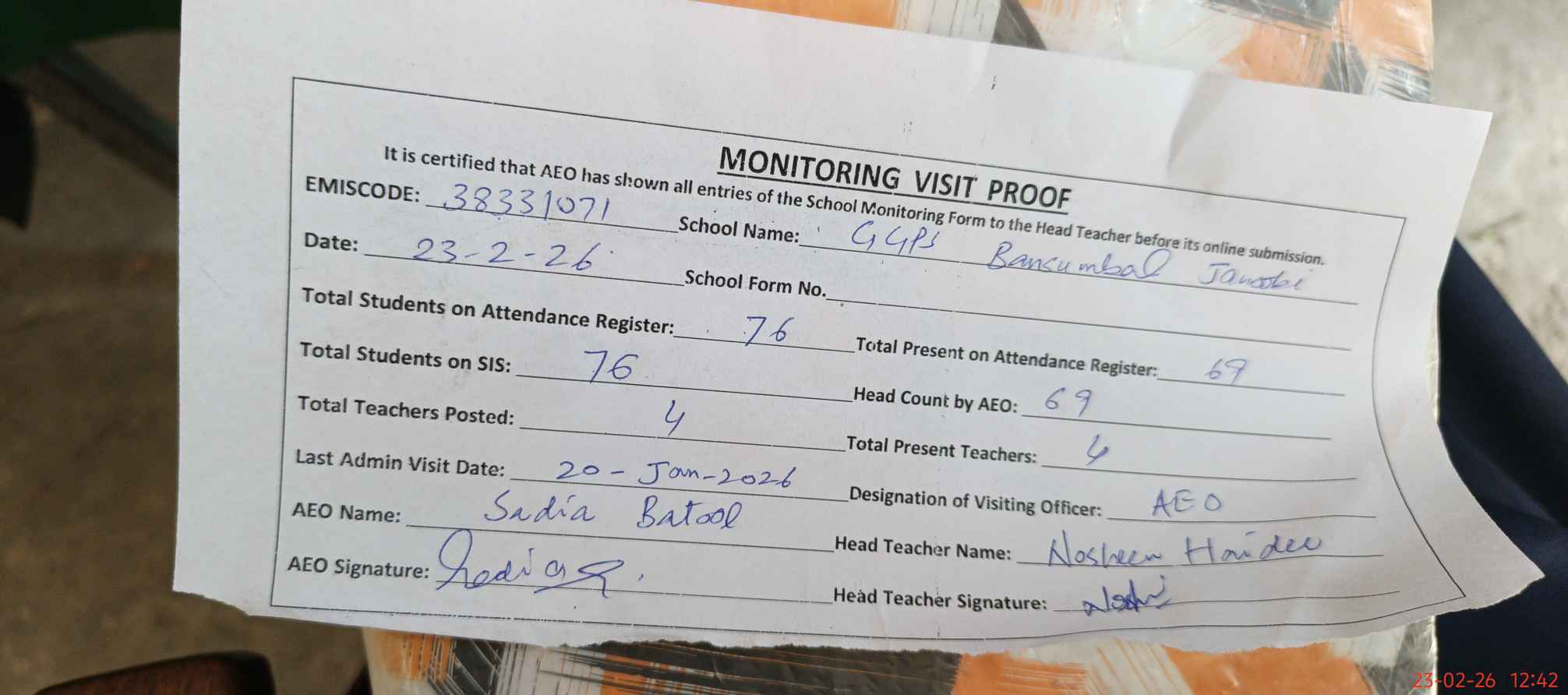 | EMIS Code: 38331071 | Name of School: GGPS BAN SUMBAL JANOOBI | |||