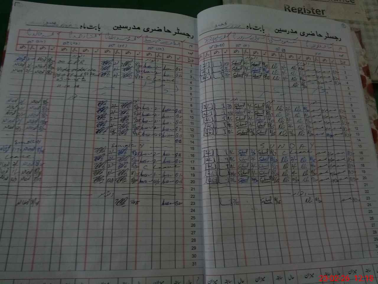 | CNIC | Full Name | Designation | R/C | Absence During Last Calender Month |