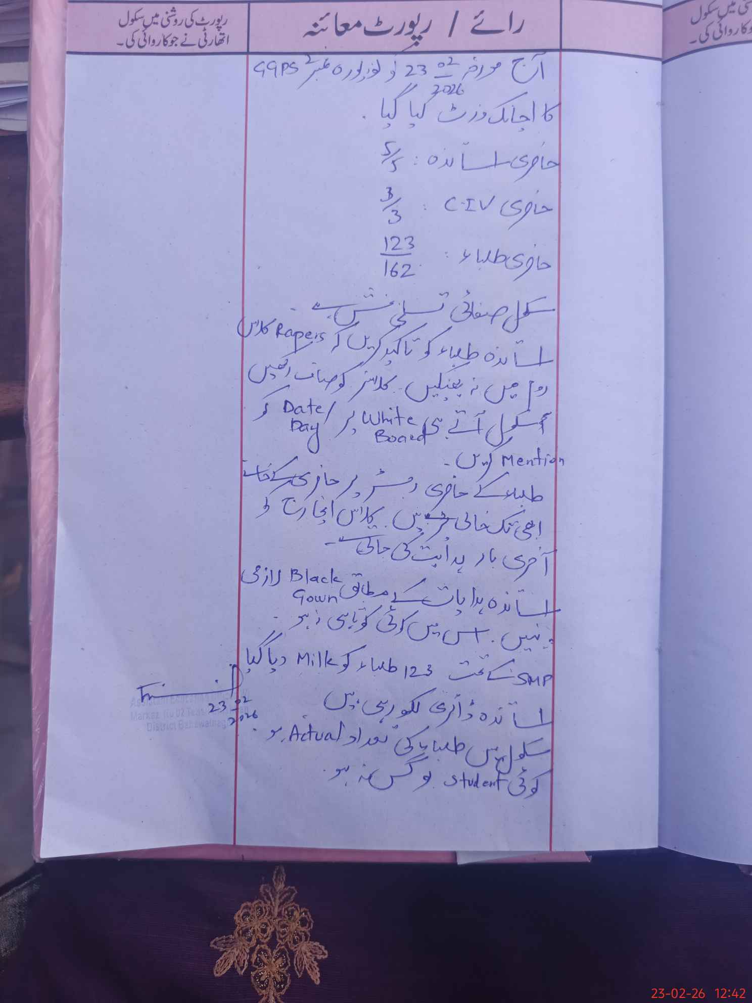 | Attendance Register | Head Teacher | MEA with School | Visit Proof |