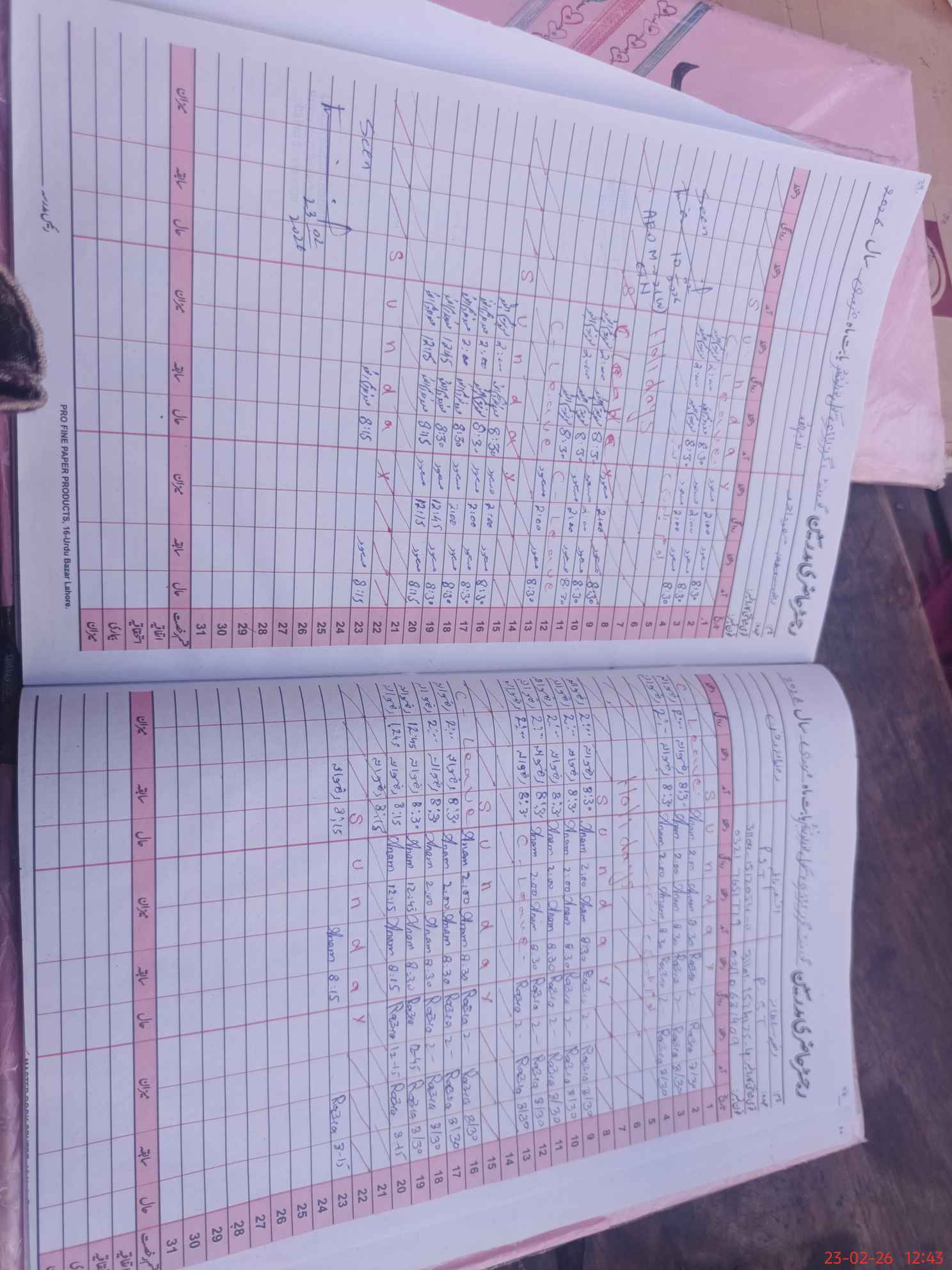 | CNIC | Full Name | Designation | R/C | Absence During Last Calender Month |