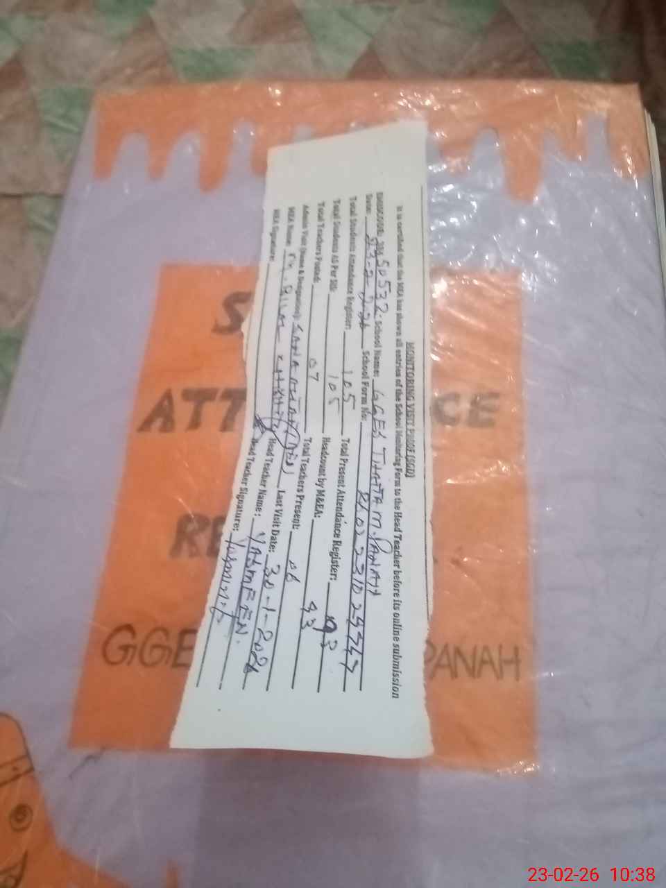 | Attendance Register | Head Teacher | MEA with School | Visit Proof |