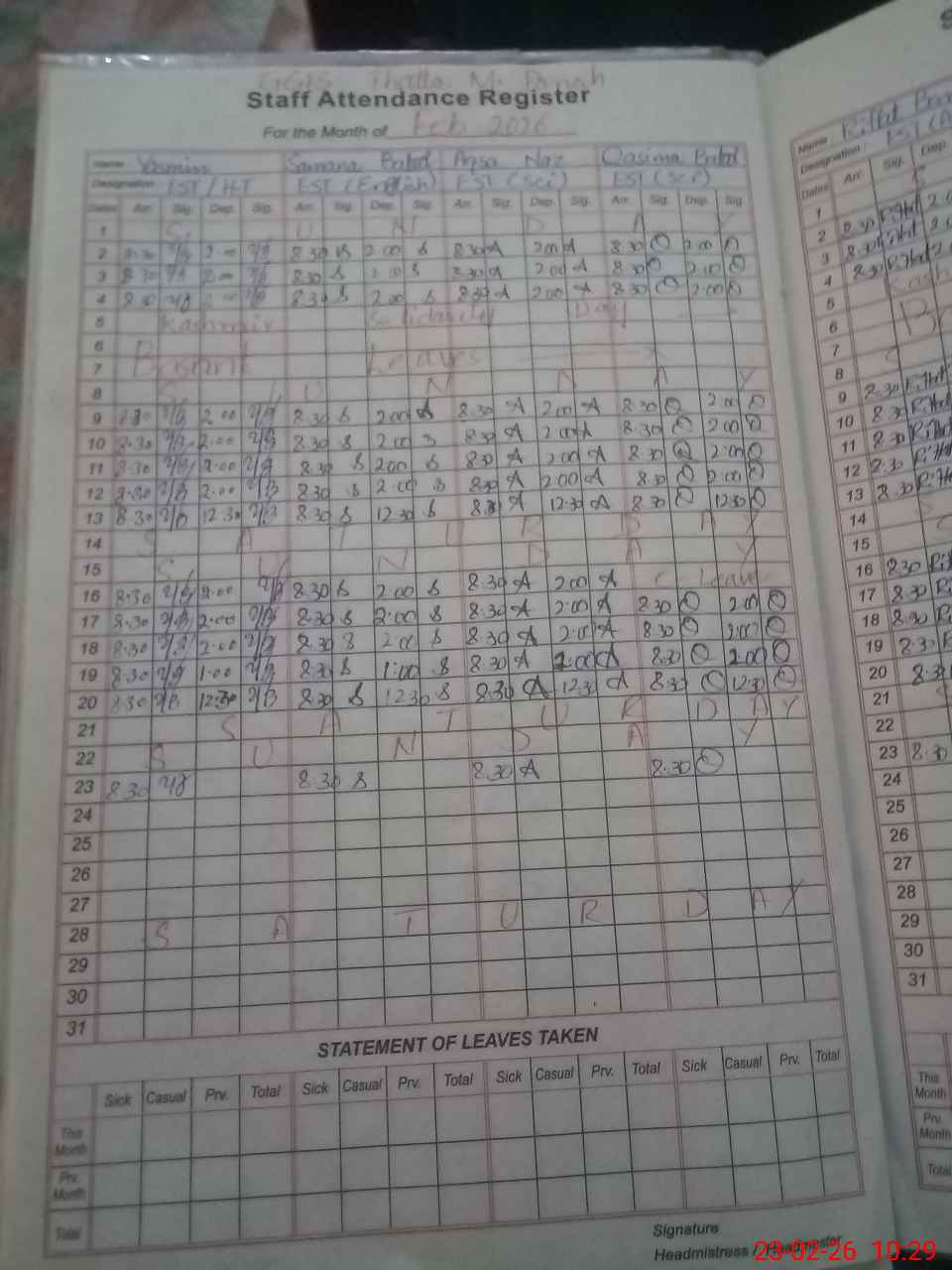 | 38**** | Af**** Kh**** | PST Science/Maths | Regular | 0 | 0 | 0 | 0 | 0 | 0 | 0 | 0 | 0 | Casual |