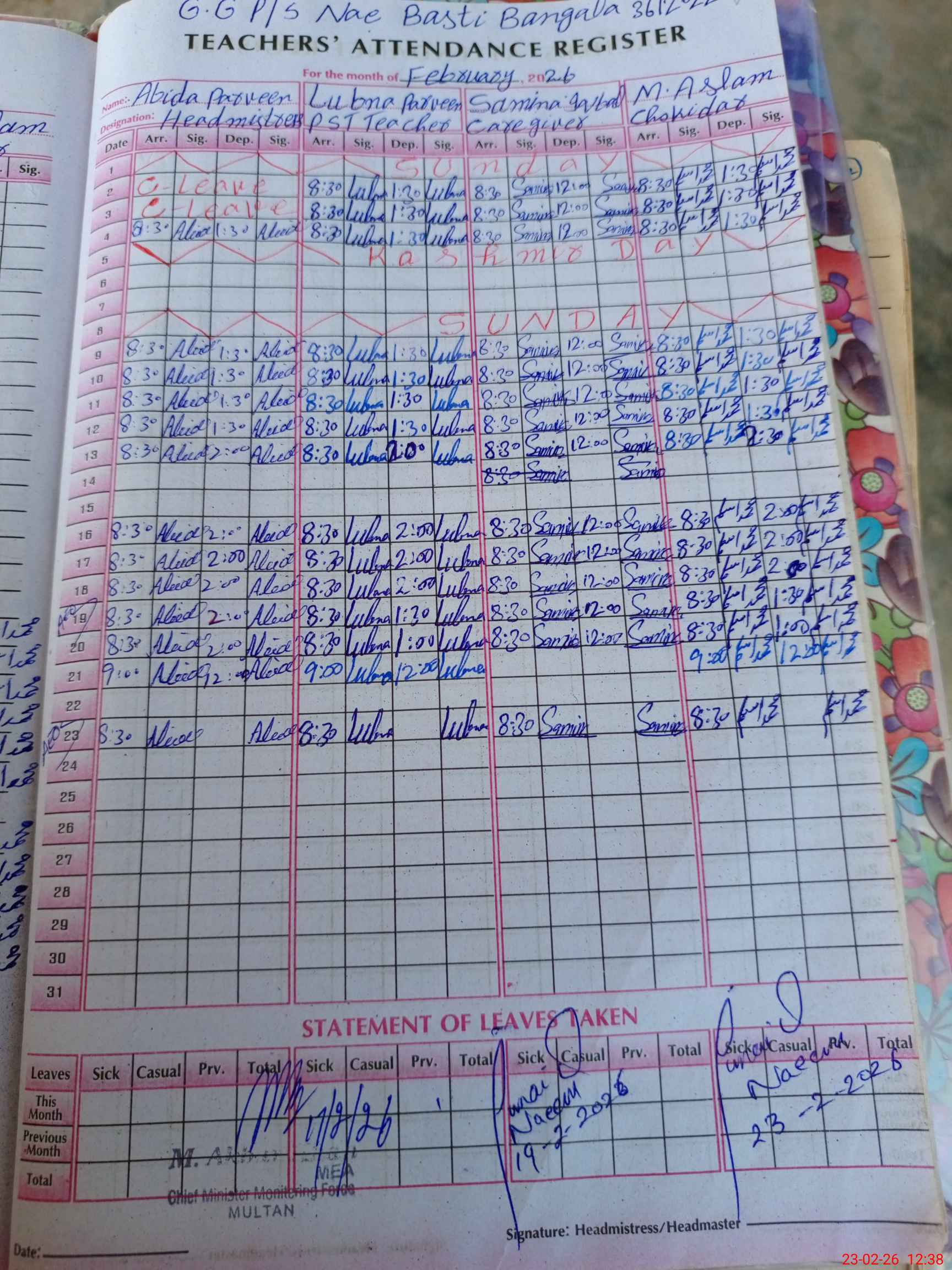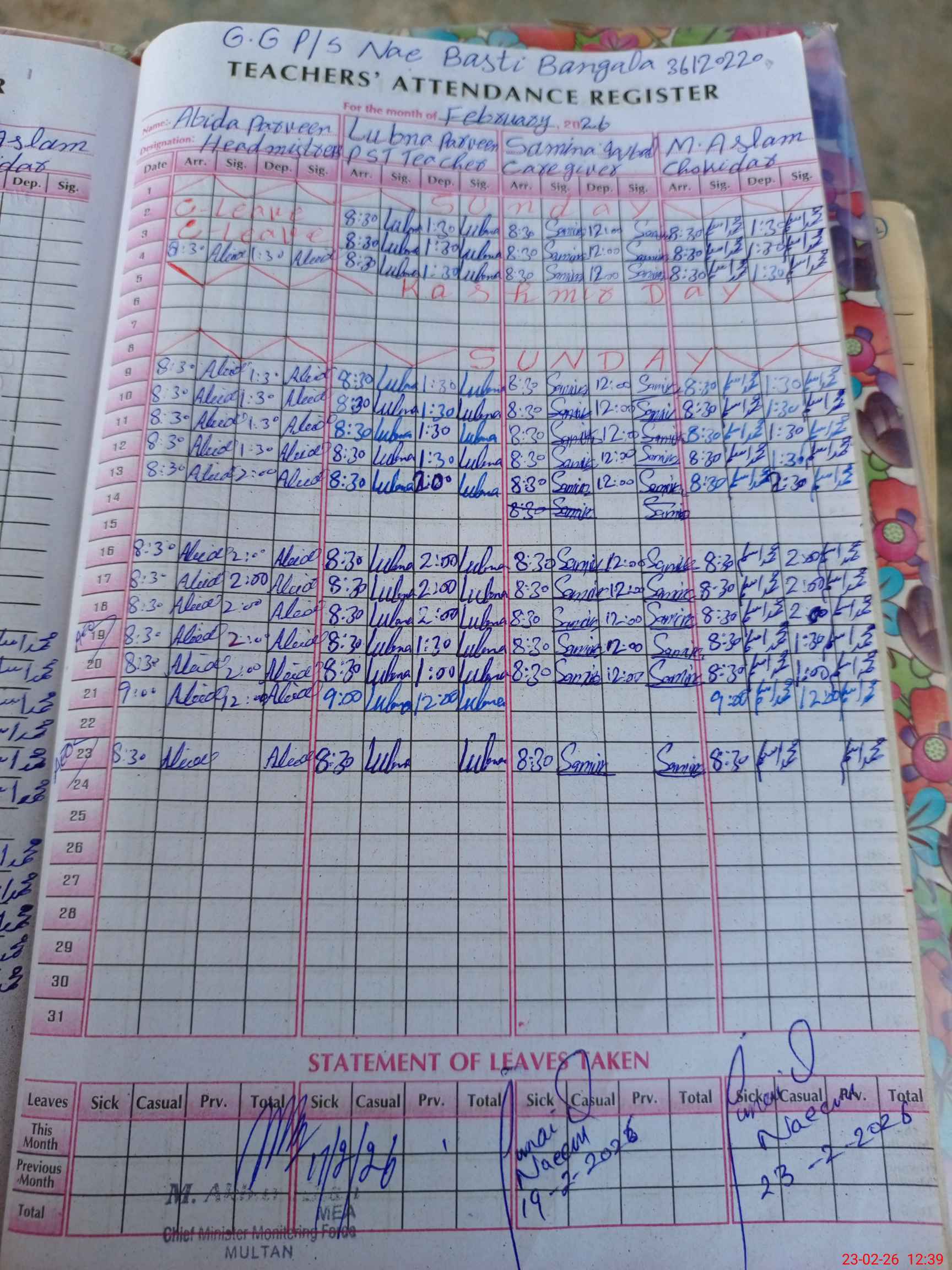 | EMIS Code: 36120220 | Name of School: GGPS NEW BASTI BANGLA SHUJABAD DISTT. MULTAN | |||