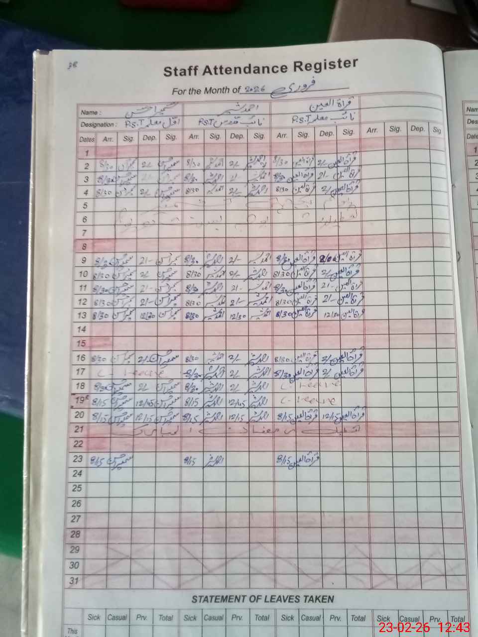 | Leave | Duty | Absent | Maternity | Medical | Ex- Pak |