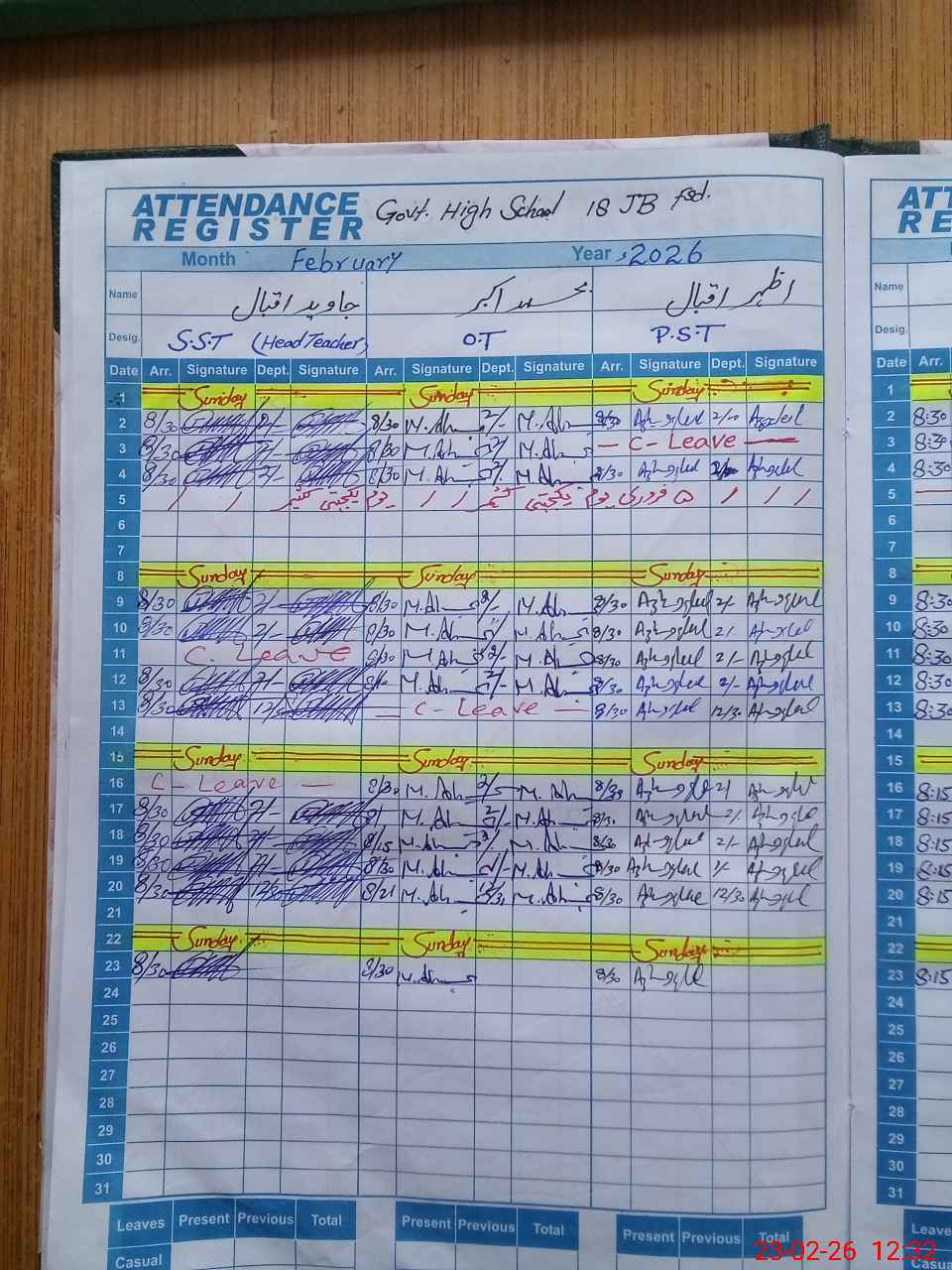 | CNIC | Full Name | Designation | R/C | Absence During Last Calender Month |