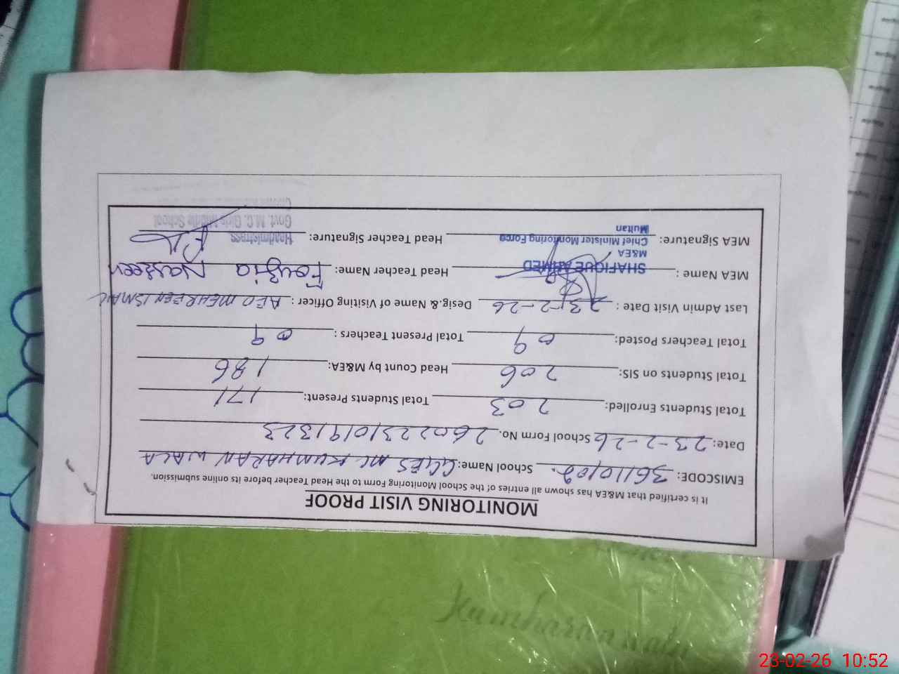 | Certified that this School was Inspected by the Undersigned MEA/DMO Today and the Information Stated Above is as Per Record. | |||||