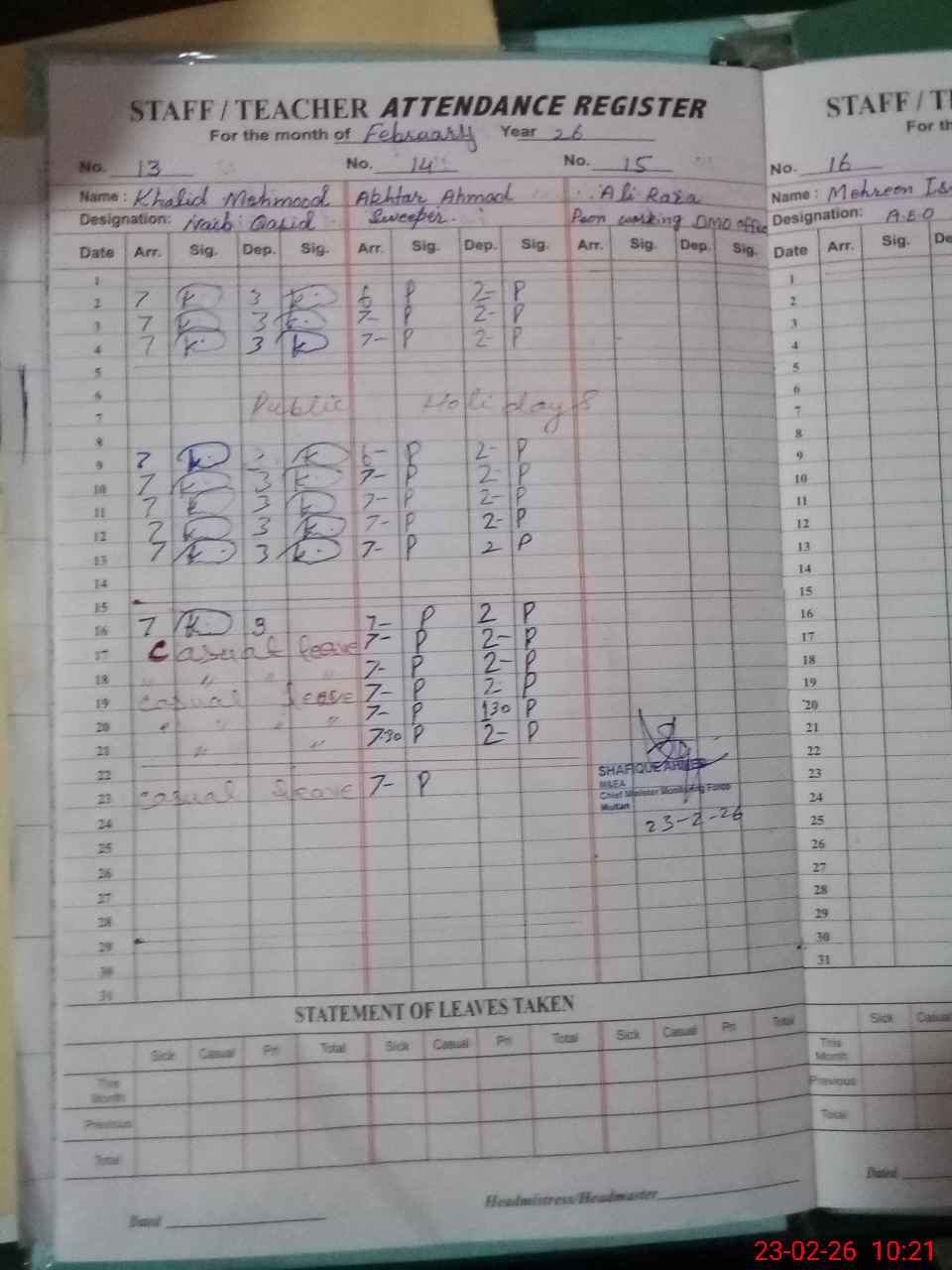 | 36**** | Kh**** Me**** | NAIB QASID | 0 | 0 | 0 | 0 | 0 | 0 | 0 | 0 | 0 | Casual | |