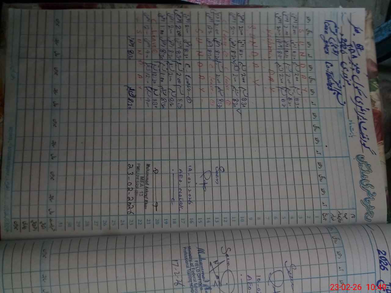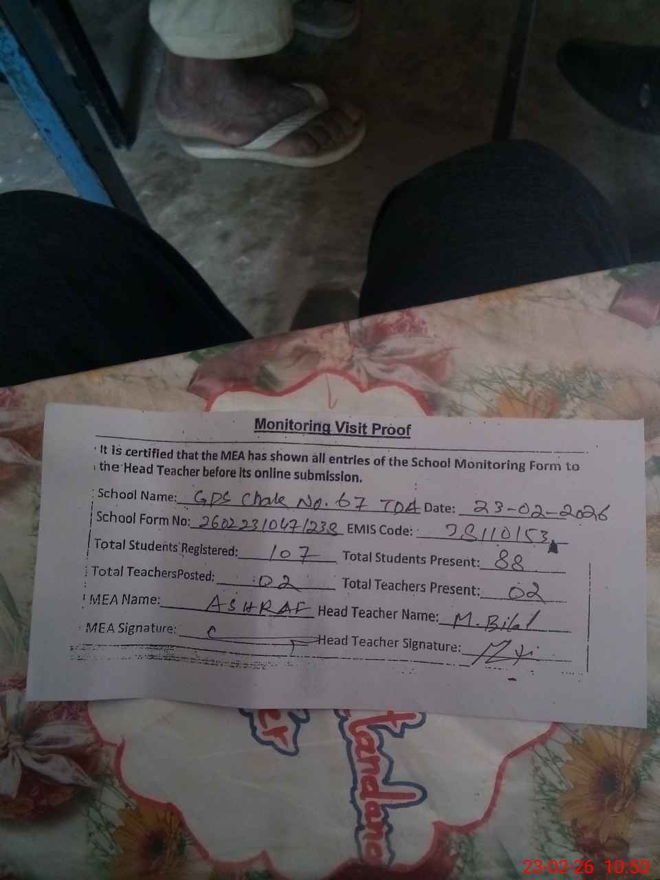 | Attendance Register | Head Teacher | MEA with School | Visit Proof |