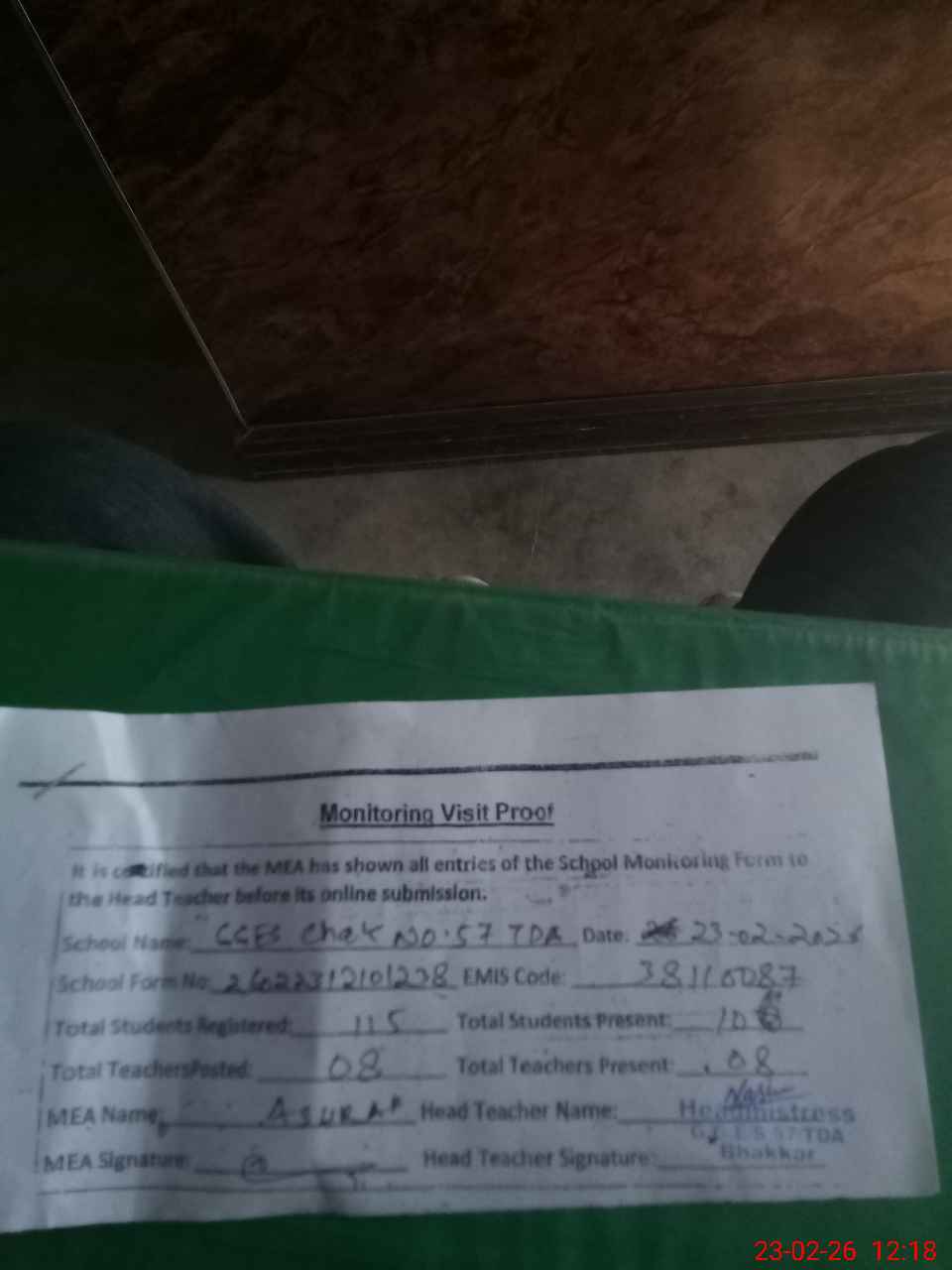 | EMIS Code: 38110087 | Name of School: GGES CHAK NO.57 TDA | |||