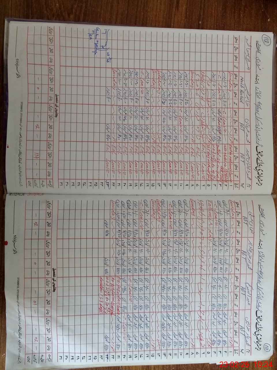 | CNIC | Full Name | Designation | R/C | Absence During Last Calender Month |