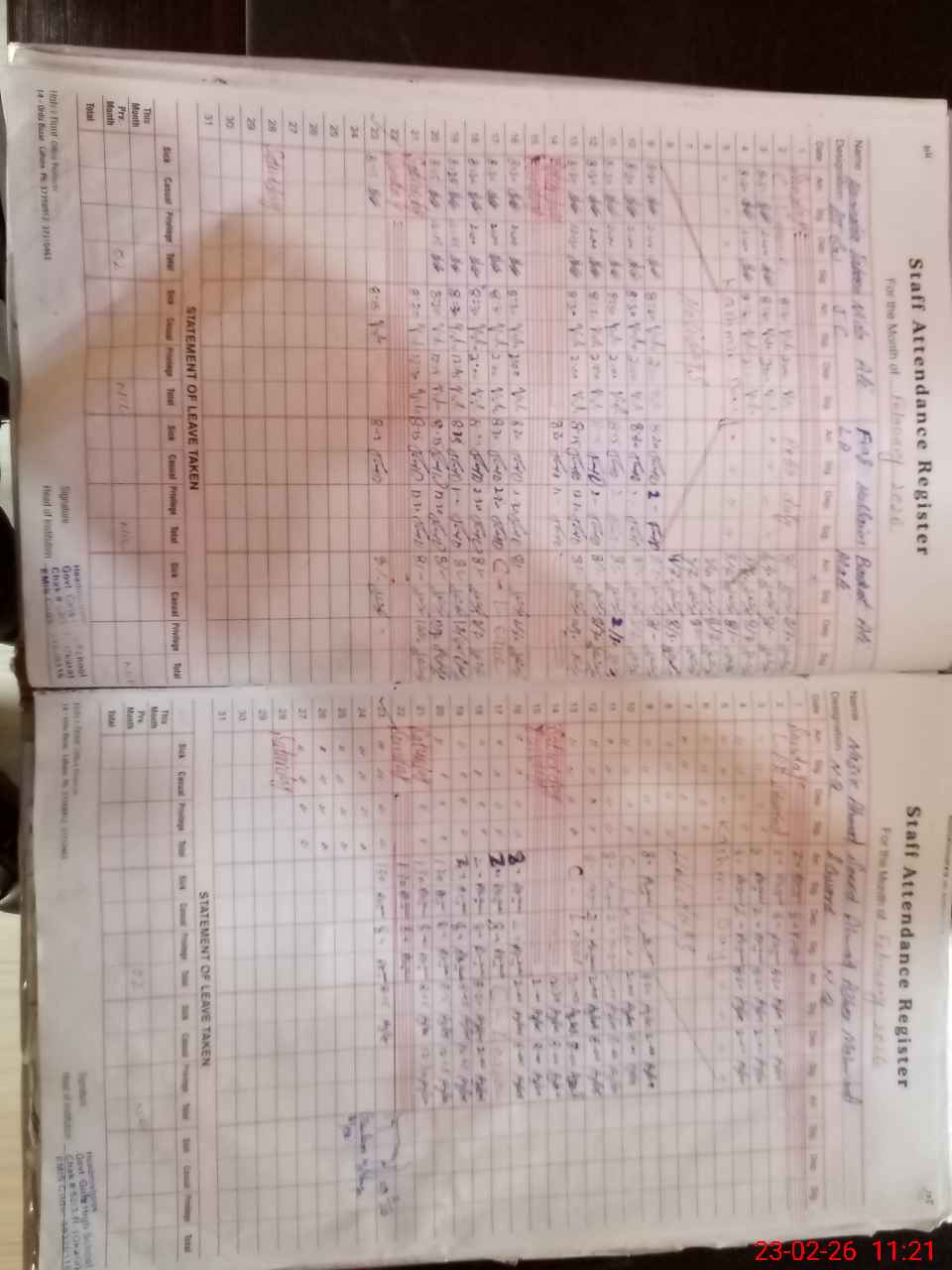 | CNIC | Full Name | Designation | R/C | Absence During Last Calender Month |