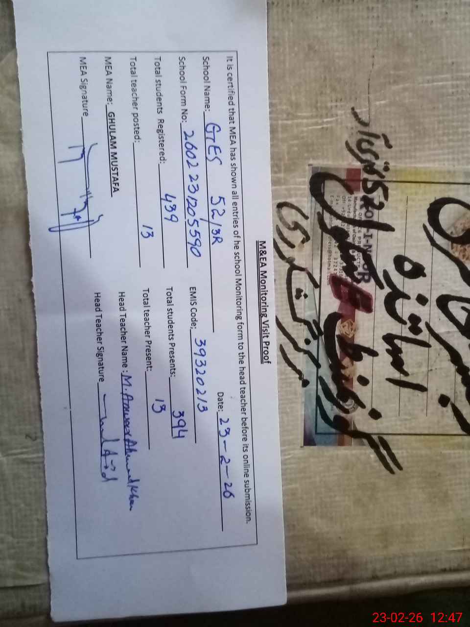 | EMIS Code: 39320213 | Name of School: GES CHAK 52/3-R | |||