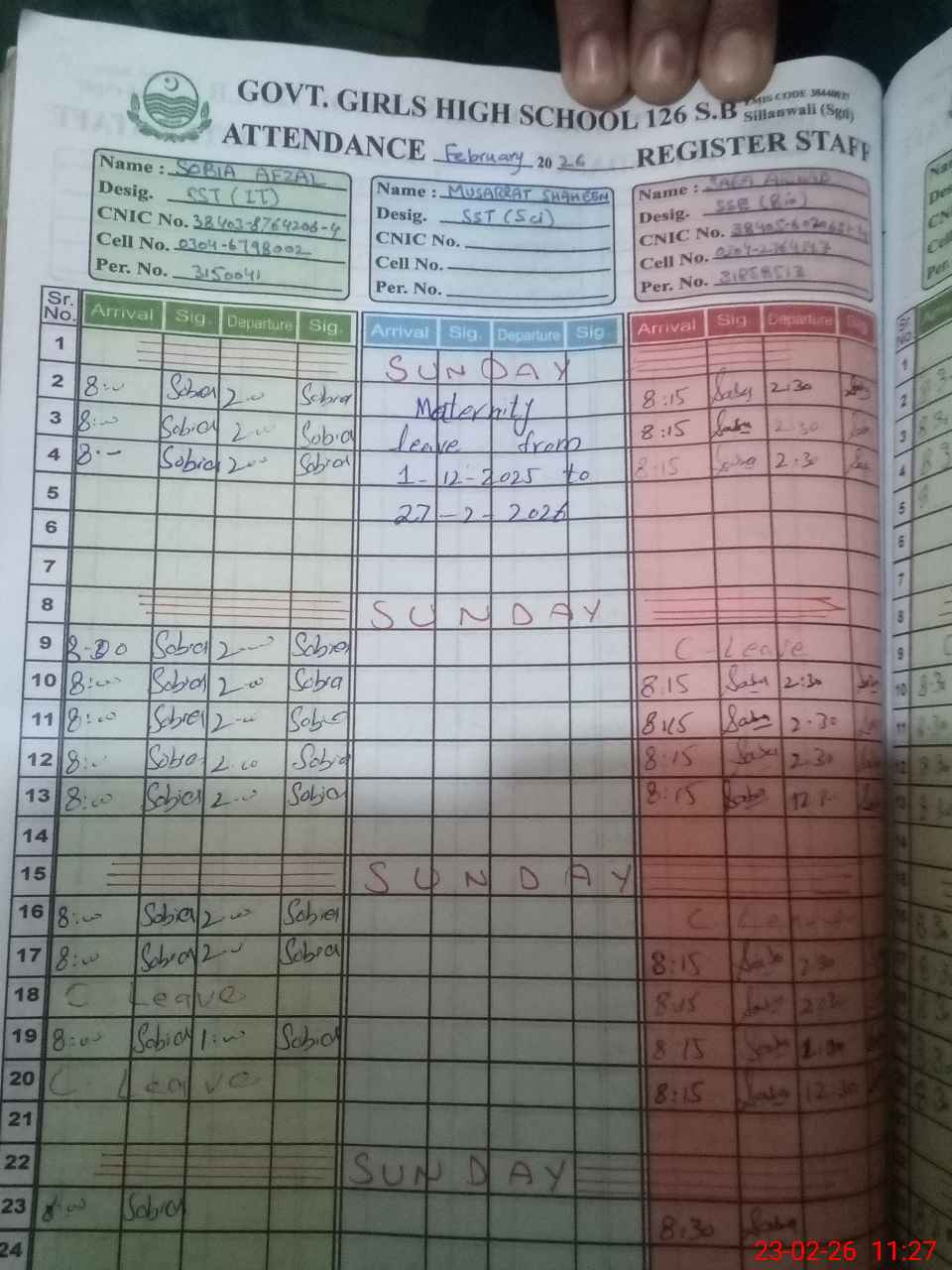 | 38**** | Mu**** Sh**** | SST Science | Regular | 31 | 0 | 0 | 31 | 0 | 0 | 0 | 0 | 0 | Maternity |