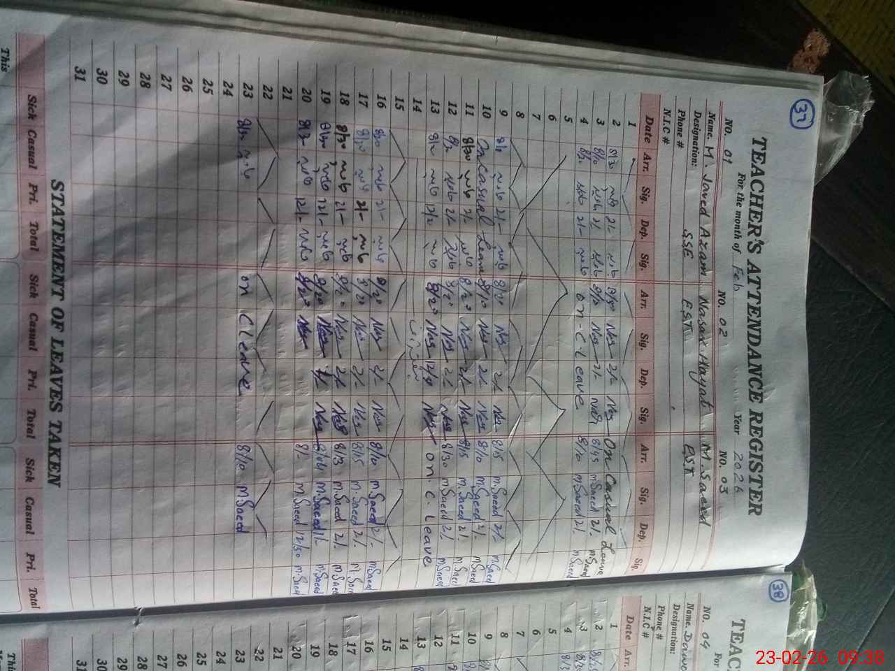 | CNIC | Full Name | Designation | R/C | Absence During Last Calender Month |