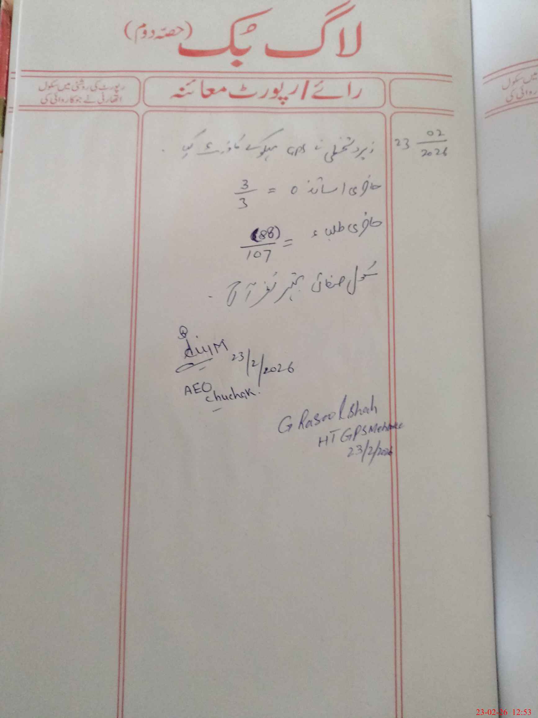 | Certified that this School was Inspected by the Undersigned MEA/DMO Today and the Information Stated Above is as Per Record. | |||||