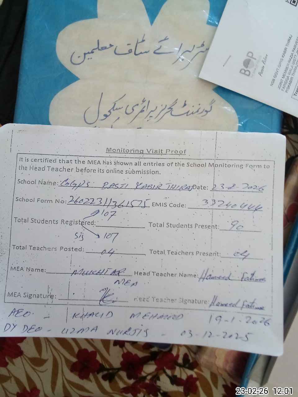| EMIS Code: 33240444 | Name of School: GGPS BASTI KABIR THIRAJ | |||