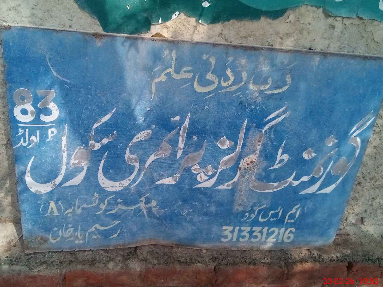 | EMIS Code: 31331216 | Name of School: GGPS CHAK NO.83/P OLD | |||