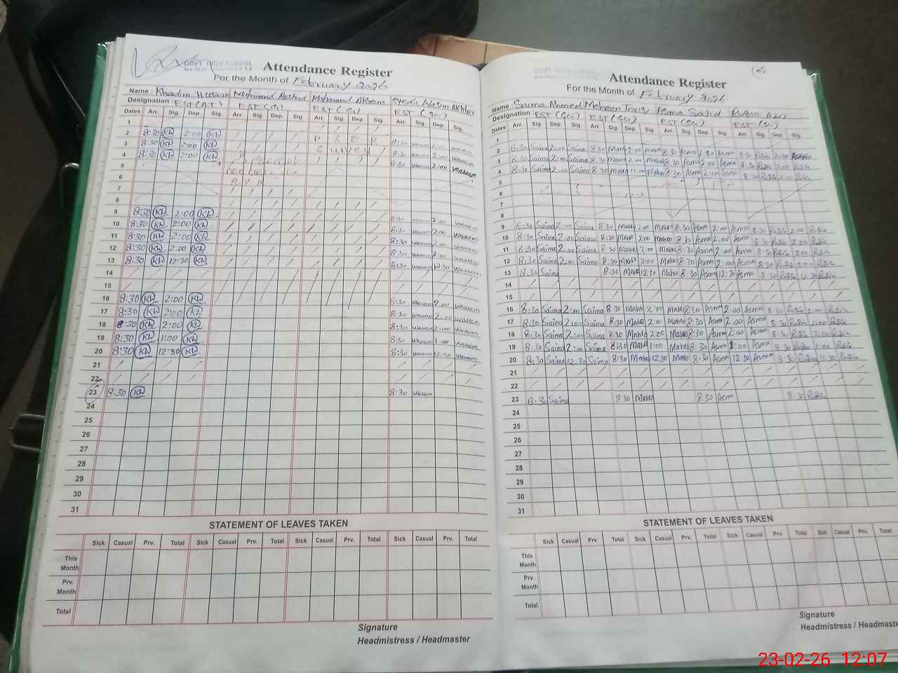 | Total no. of Classrooms: 30 No. of Classrooms Used for Teaching: 22 No. of Classrooms Storing Old Furniture, FTBs, etc: 0Comments if Any: Sir teachers and students attendance on sis not carried out |