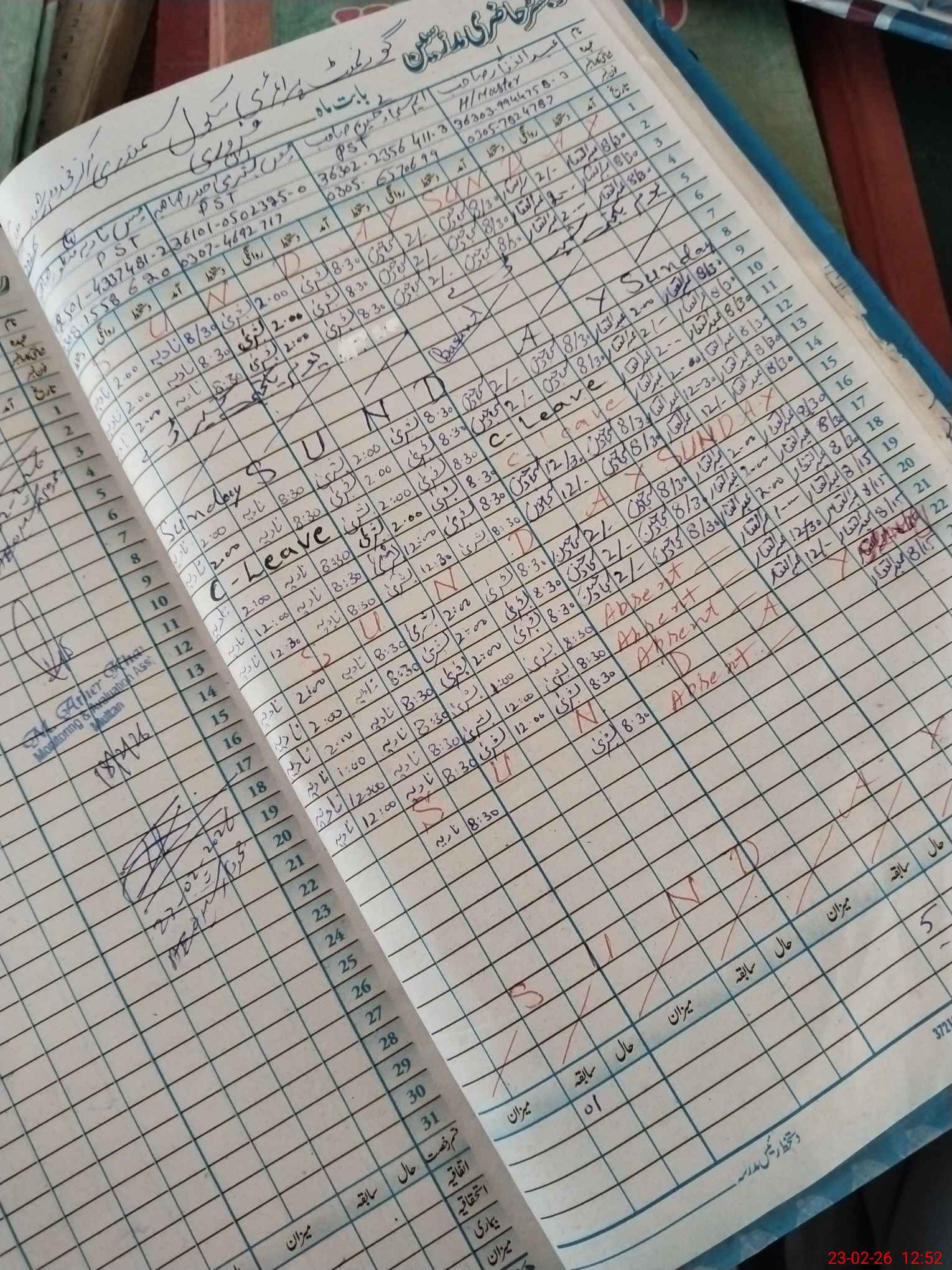 | 36**** | Sa**** Hu**** | PST Arts | Regular | 0 | 0 | 0 | 0 | 0 | 0 | 0 | 0 | 0 | Absent (Un-Authorized) |